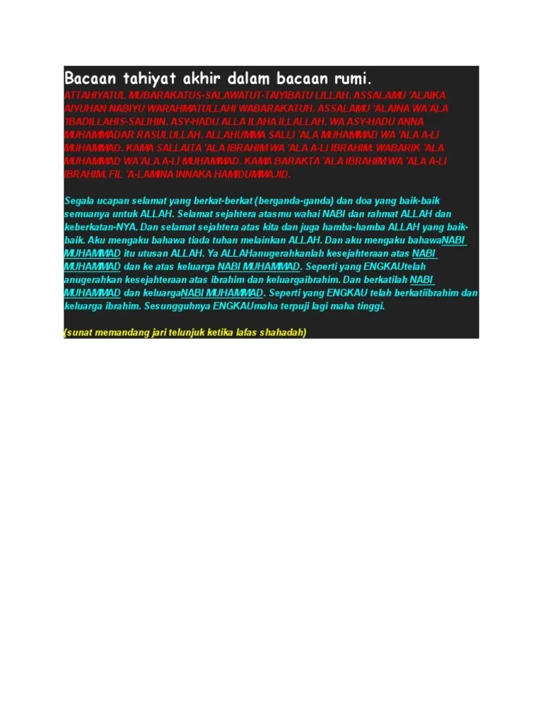 Bacaan tahiyat akhir dalam rumi: